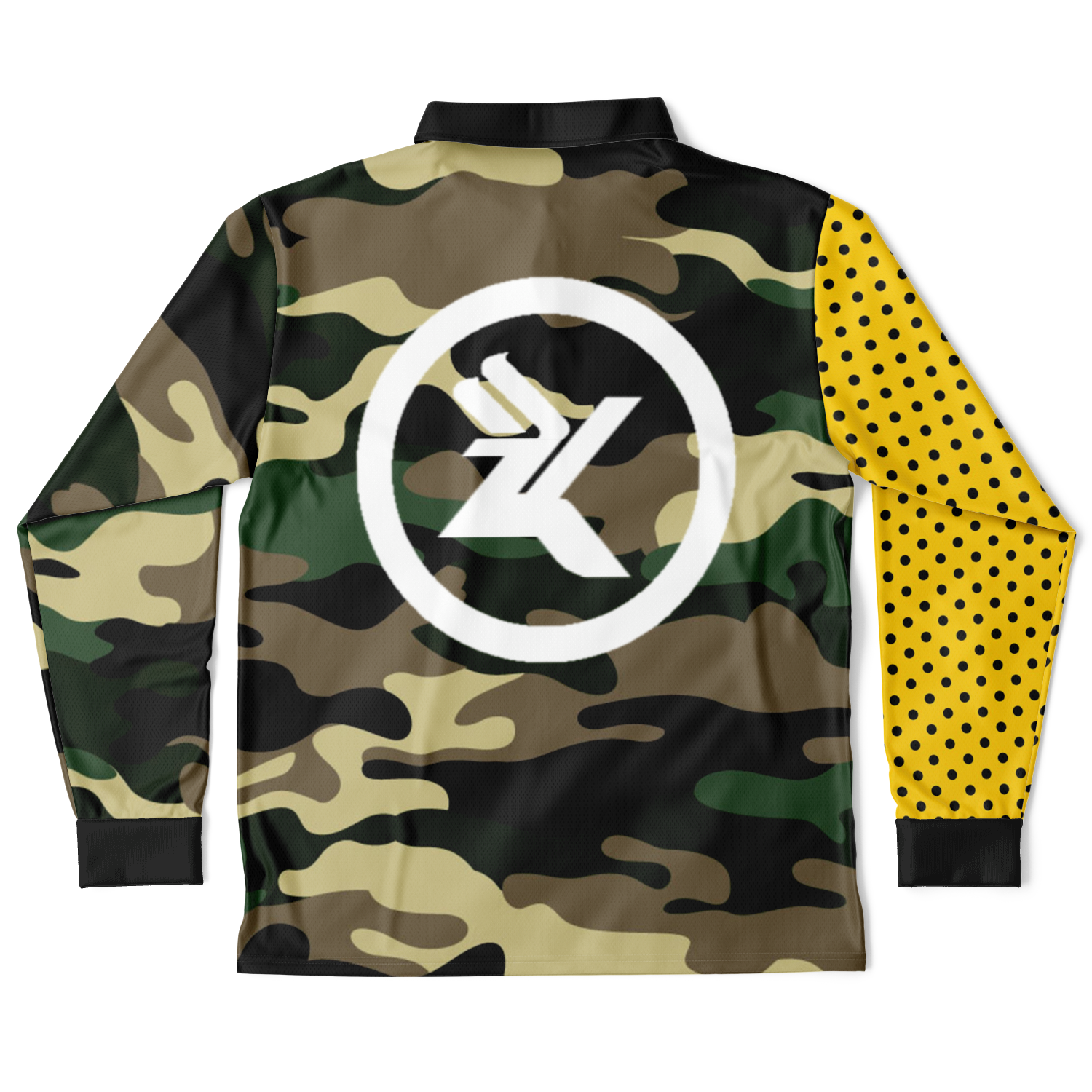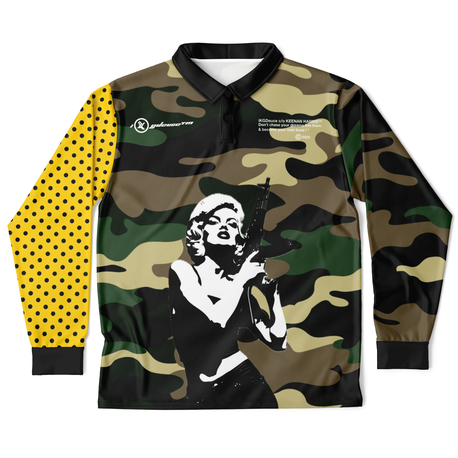 Lady Gunplay (LongSleeve Polo Shirt) Camo/Yellow & Black Polka Dot .
